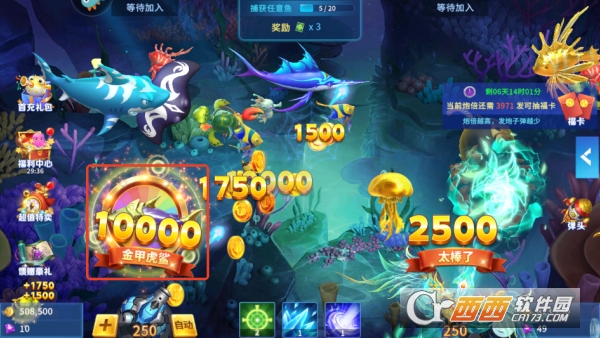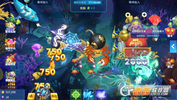 多模式渔场玩法:设有经典渔场、副本殿堂、弹头乐园、冰原探宝等多种玩法。经典渔场有各类特色 BOSS 鱼,击杀积累奖励可抽奖;副本殿堂中章鱼船长场次捕获BOSS掉落珍珠召唤海盗船得金币积分,西游记场次可参与加官进爵和西游宝藏玩法。