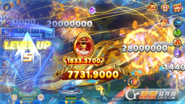 4、多种道具使用:提供诸如冰冻道具、分裂道具等多种捕鱼辅助工具,帮助玩家更高效地捕鱼。