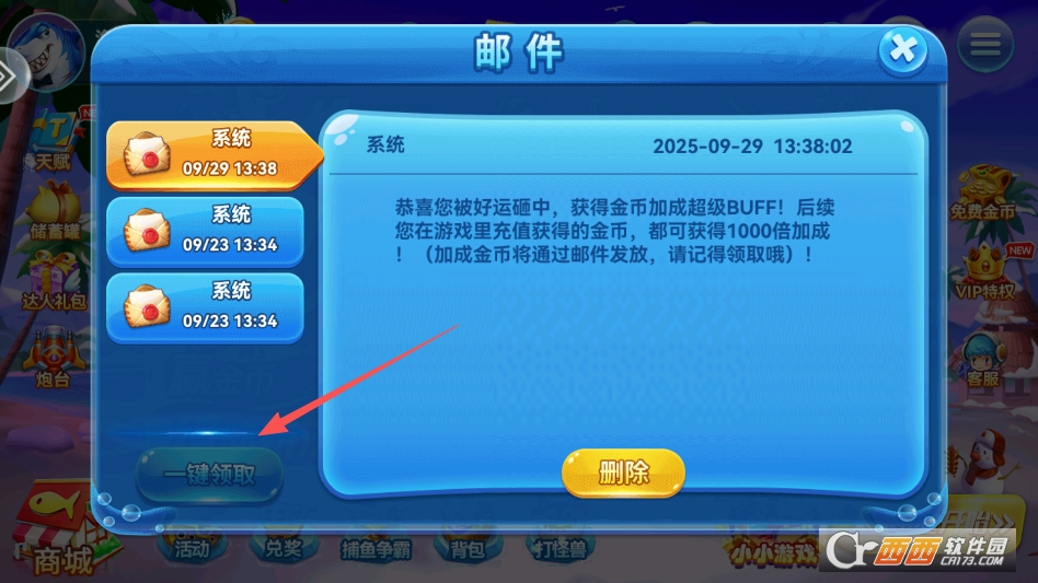 进入邮箱即可点击左下角进行一键领取所有邮件奖励