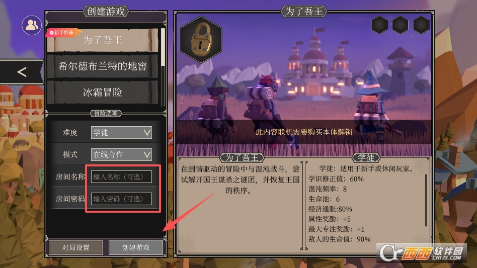 来到联机界面,点击创建房间