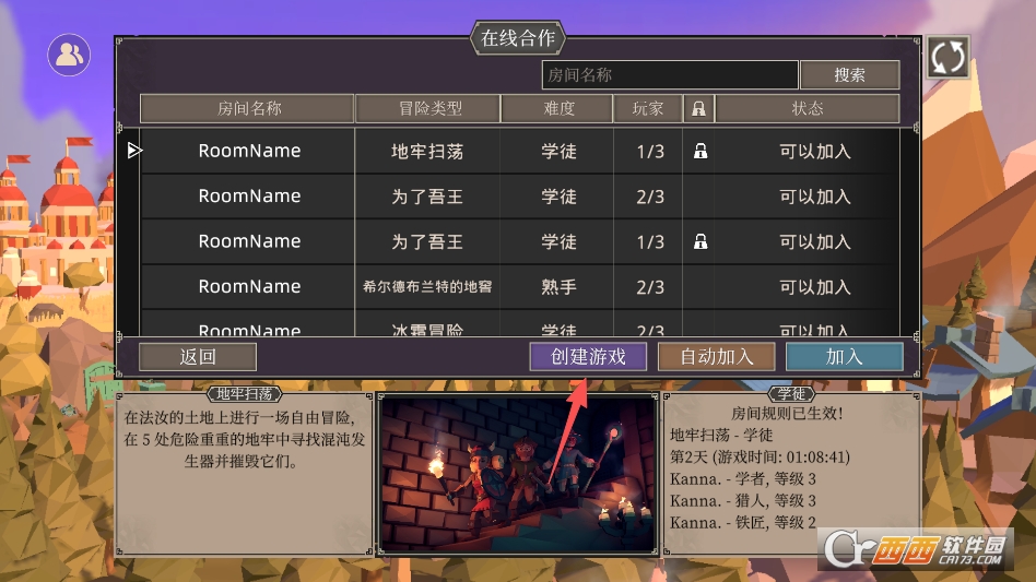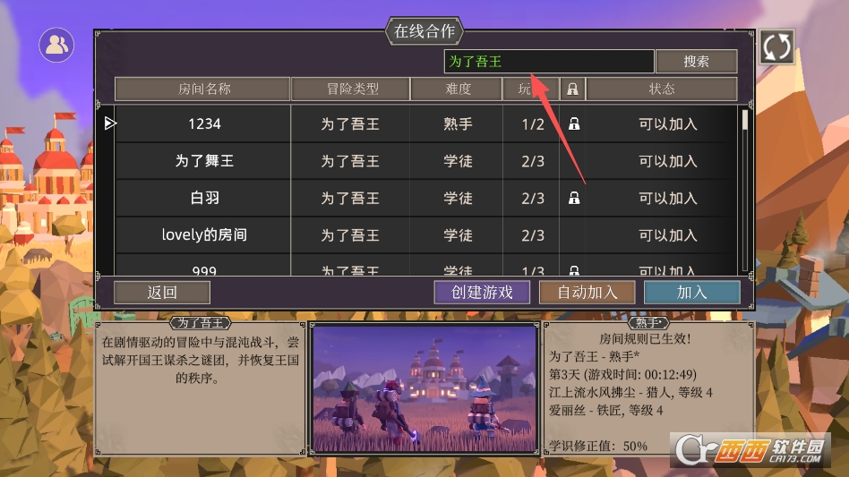 其他玩家则在联机界面搜索房间名称输入密码加入来游玩