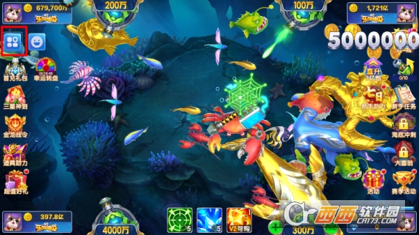 4、福利活动参与,设有福利中心,玩家可参与登录签到、日常任务、节日活动等,领取金币、炮台、道具等奖励,道具可用于提升捕鱼效率,助力获得更高分数。
