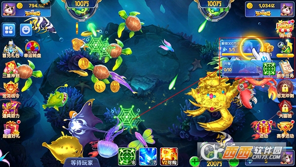 2、多人在线竞技,支持实时匹配其他玩家共同捕鱼,可组队挑战高难度副本,也能参与跨服排行榜比拼,与全服玩家争夺排名,赢取额外奖励,增强竞技性。