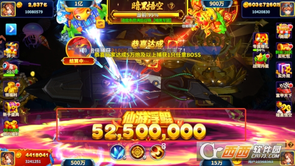 多场景竞技与目标捕获:包含经典渔场、恐龙狂打渔场等多类场景,部分渔场需满足金币门槛才能进入;核心目标是捕获不同鱼类(从普通小鱼到深海巨妖、龙王等BOSS),依据鱼类珍稀度与捕获数量获取高分,解锁奖励或新玩法。
