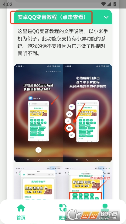 社交平台变音教程配套:针对安卓用户常用的 QQ、微信两大社交平台,提供步骤清晰的变音操作教程,用户点击即可查看,轻松实现语音盒音效与社交聊天的无缝衔接,拓展使用场景。