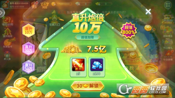成长进阶玩法:玩家完成捕鱼任务可提升角色等级,解锁更高级渔场、珍稀鱼类及强大BOSS挑战;捕获鱼类获得的金币可用于升级炮台,炮台等级提升后不仅威力增强,还能解锁新技能与特效,如范围伤害、高倍率攻击等。