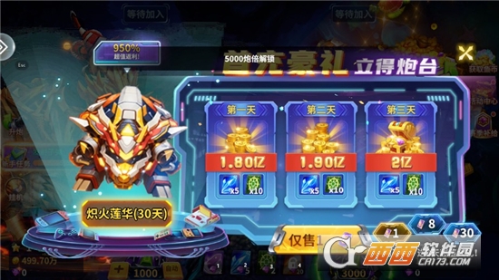 1、新用户注册即送万枚金币+高级炮台体验卡;