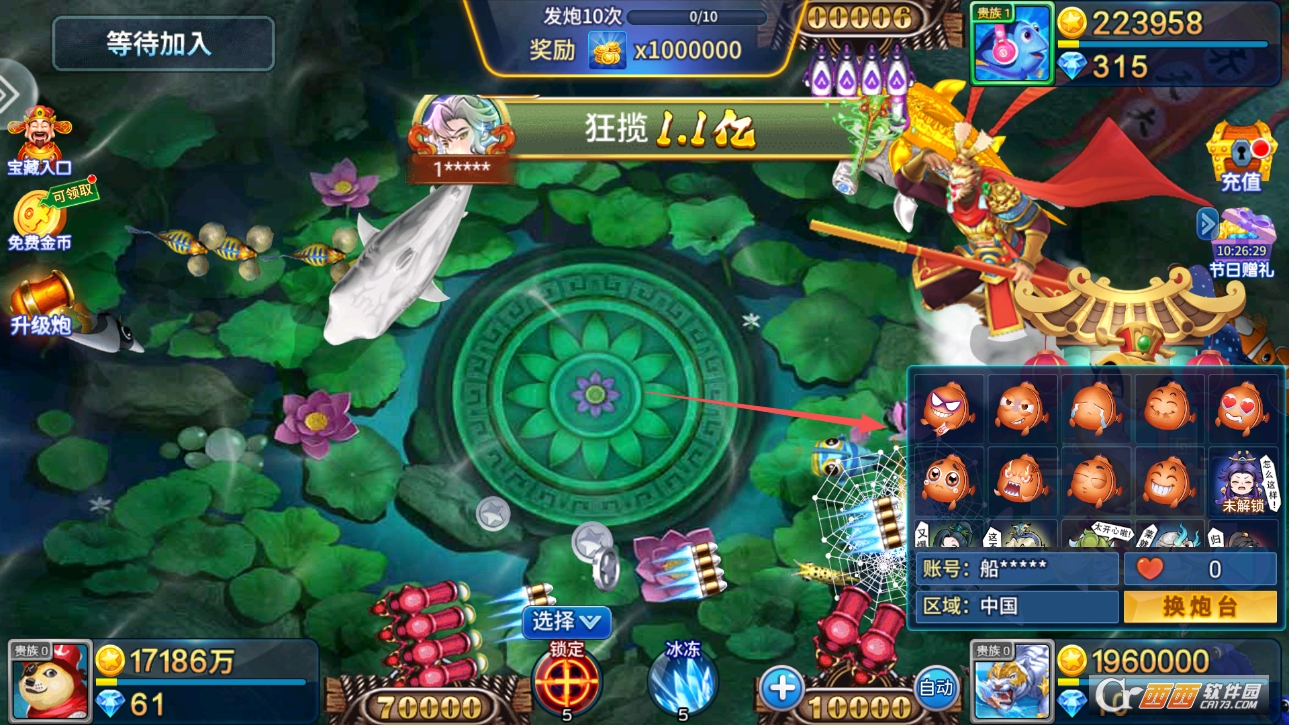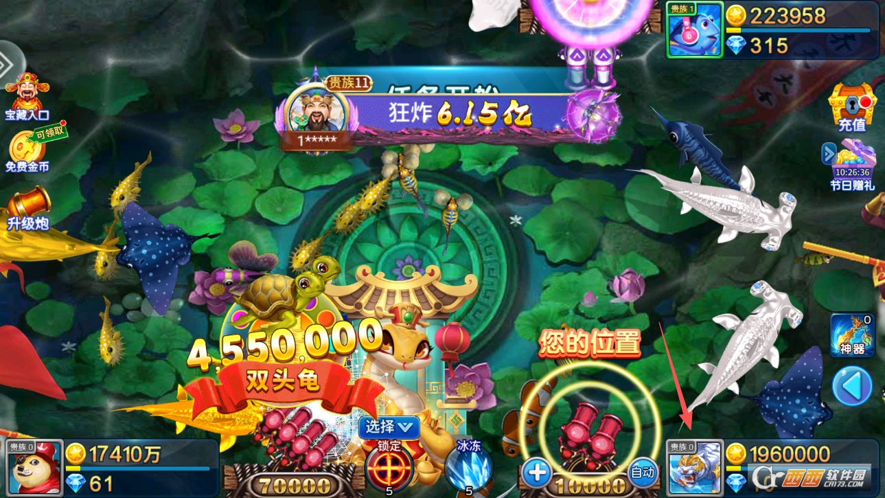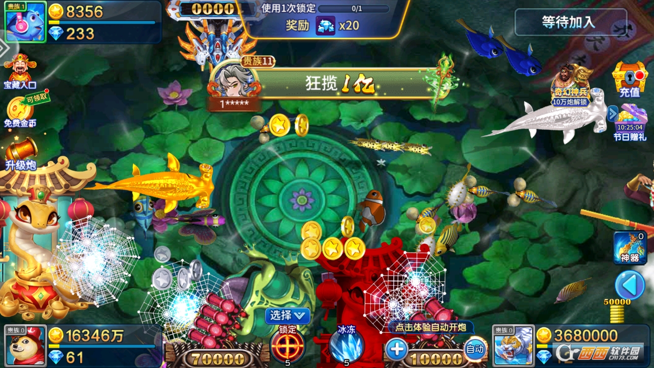 “分场次挑战,适配不同玩家水平” 是核心玩法之一。游戏更新了诸多场次,有适合新手的 “新手场”,里面鱼类移动速度慢、倍率门槛低,就算是刚玩的玩家也能轻松捕获;还有适合资深玩家的 “高级场”“boss 场”,里面有更多高价值鱼类和超大 boss,挑战难度更高,对应的奖励也更丰厚,不同水平的玩家都能找到合适的场次。