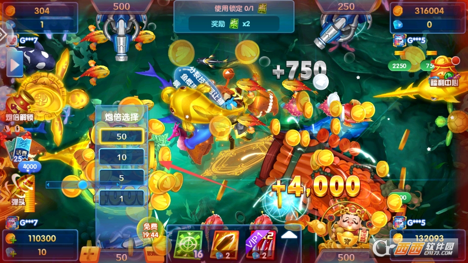 即可呼出倍率菜单,提升你的等级还可以解锁更多的炮台倍率