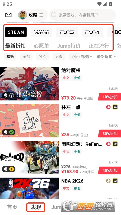 2,内置海量游戏折扣分类推荐