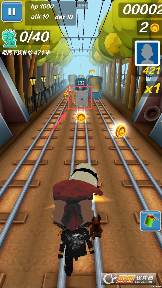 第一个主打玩法是“经典跑酷操作+障碍躲避”。保留了地铁跑酷的核心操作逻辑,通过滑动屏幕控制蜂医左右移动、跳跃、滑铲,躲避轨道上的障碍物。随着游戏进行,跑酷速度会逐渐加快,障碍物密度也会增加,需要快速反应才能继续前进,熟悉的操作模式能让玩家快速上手。