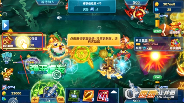 有章鱼扭蛋、召唤神龙等特色玩法,设不同难度场景,新手从低倍率入手,资深玩家可进高级场景,同时支持多人实时PVP对战,玩家可与全球对手比拼捕鱼得分和 BOSS 击杀数。