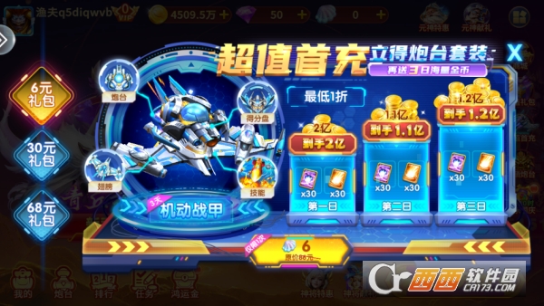 高自由度与个性化体验:支持自定义房间规则,可设置 “仅新手炮台”“高倍率狂欢局”,还能添加密码打造私密捕鱼空间;提供炫酷炮翅、专属炮台皮肤,部分版本含翅膀系统,兼顾外观个性与捕鱼战力提升。