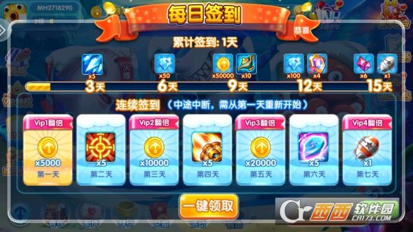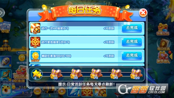 等级福利与成长奖励:每次提升VIP等级均可领取尊享礼盒,内含海量金币、钻石及捕鱼道具,助力快速提升装备与技能。达到VIP3可解锁七日幸运匣,每7天免费抽奖1次,有机会获得神器碎片与限定炮台;VIP4及以上还能开启十五日聚宝池,通过聚宝玩法扩充金币储备。