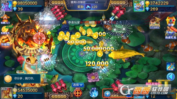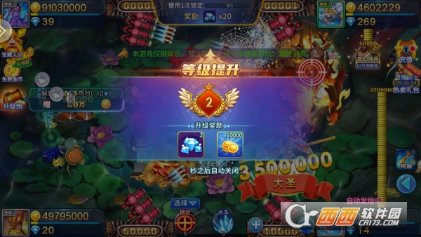 2,捕获特殊鱼类与升级都能获得金币与道具奖励