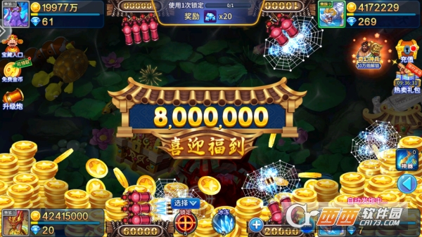创新鱼骨奖励机制:独特的鱼骨奖励机制区别于传统捕鱼游戏,鱼骨不仅能兑换实物奖励,还可用于解锁特权渔场——进入该渔场后,鱼类移动速度减慢15%,炮弹射程增加10%,兼具娱乐性与实用性,提升玩家长期游戏的动力。