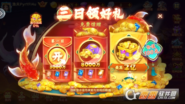 福利体系丰富:每日签到、在线均可获免费金币,首登送10000金币;支持捕鱼赢话费,还能通过奖券夺宝兑换实物大奖,定期举办百万金币活动,福利覆盖虚拟道具与实体奖励。