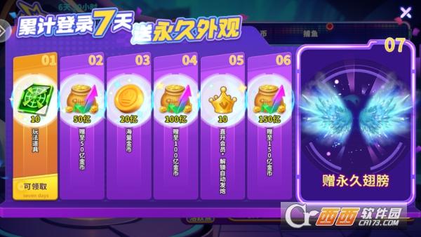 专属资源与道具特权:VIP玩家可每日领取专属豪华礼包,内含海量金币、高级炮台碎片及稀有道具,等级越高礼包奖励越丰厚。同时解锁VIP专属炮台与限定皮肤,部分高等级VIP还能获得专属兑换码,兑换翅膀装饰等独家奖励,大幅提升捕鱼效率与视觉体验。