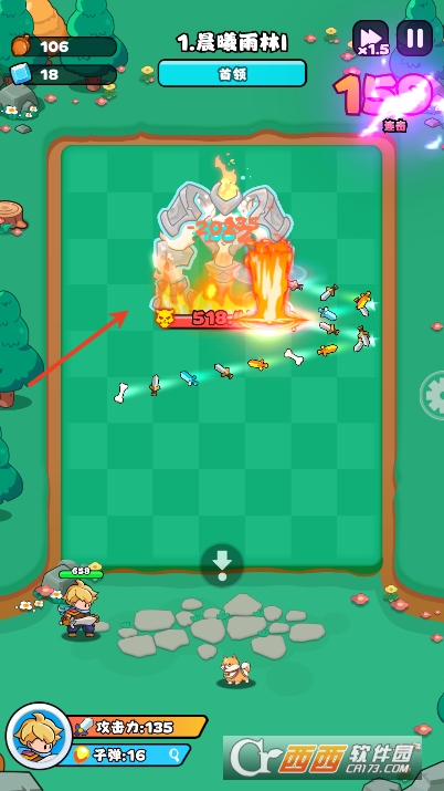 基础操作技巧:战斗中要优先瞄准击中金色宝箱,开启后可立即增加武器数量,大幅提升弹幕输出能力,快速压制敌人。遇到地图中的问号气泡需及时获取,能随机获得攻击力提升、射速加快等强力BUFF,在陷入劣势的关键时刻,往往能凭借BUFF扭转战局。