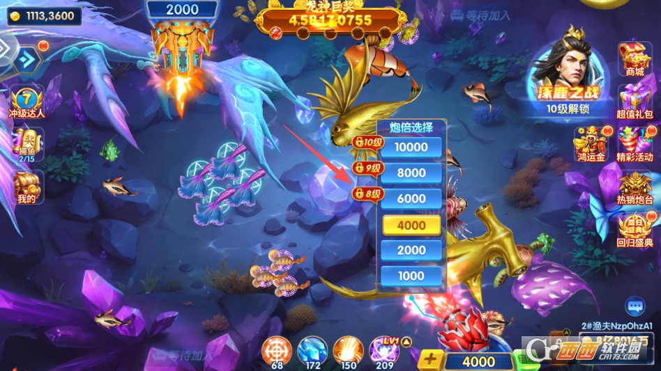 即可呼出炮台倍率按钮,不断升级可以解锁更高倍率上限