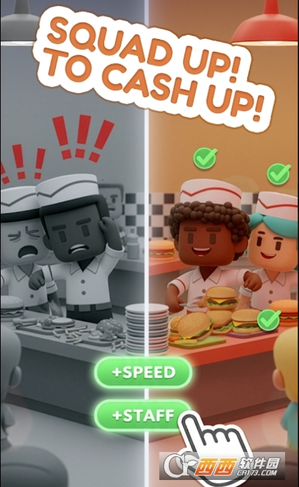 当午餐的铃声敲响,饥肠辘辘的顾客如潮水般涌来!厨房里是煎板上滋滋作响的肉排与沸腾油锅交织的灼人热浪,餐厅内是此起彼伏的点单铃与不耐烦的催促声汇成的喧嚣风暴。这不是一场灾难,而是属于你的战场——欢迎来到《汉堡店快跑》!