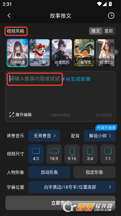 操作简单:软件界面设计简洁清晰,功能分类明确,如一键成片,AI故事推文等核心功能直观可见,用户无需查阅复杂教程,按照提示几步就能完成创作操作,即使是没有使用过类似软件的新手也能轻松上手。