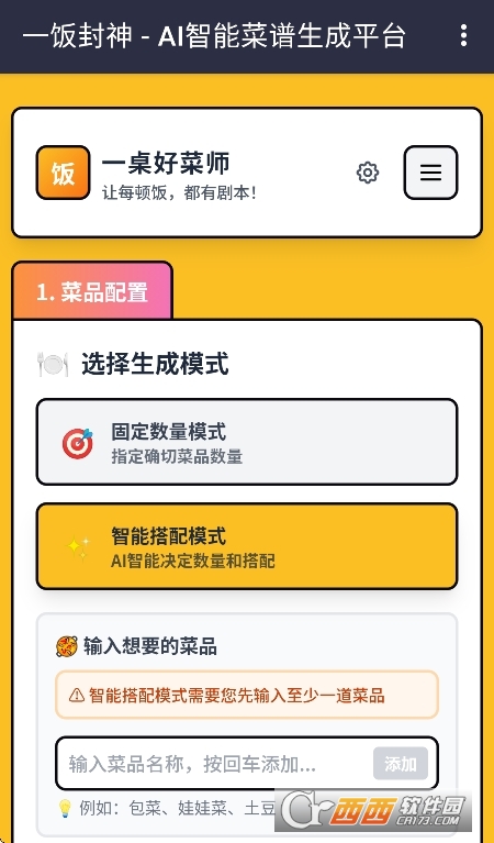 一饭封神ai智能菜谱软件最新版是一款全新的智能ai菜谱软件,能够选择不同的食材智能生成专属的ai菜谱,提供丰富的菜谱制作菜肴过程,提供免费的全新菜系选择,非常有趣,涵盖来了更多精彩的菜谱佳肴制作过程,非常好用,欢迎小伙伴们前来下载吧。