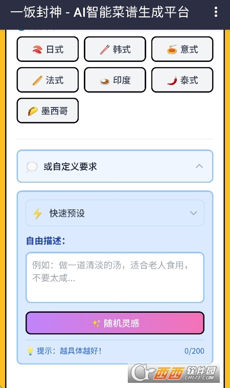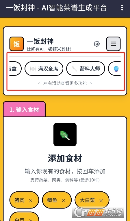 一饭封神ai软件下载免费安卓版是一款主打AI驱动的智能菜谱工具,专为烹饪爱好者尤其是厨房小白打造,核心功能是根据用户选择的食材智能生成专属菜谱,提供从食材准备到成品出锅的完整制作流程,让烹饪变得简单高效。