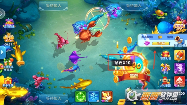 3,捕鱼获取金币与钻石用来升级炮台倍率