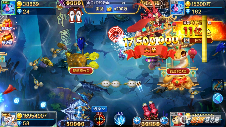 第三个亮点是“打击反馈更爽,沉浸感更强”。同类游戏大多打击感平淡,这款不仅有无限反弹的炮弹机制,击中鱼群时的音效、特效都做得到位。高倍炮台击中大鱼时,屏幕会有震动反馈,配合金币爆炸的动画,那种“精准打击+丰厚回报”的快感,比其他捕鱼游戏的体验更强烈,玩起来更上瘾。