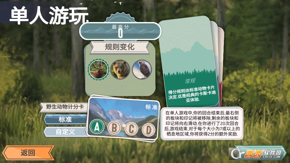 这是一款聚焦“自然探索+生态策略”的桌游手机版,核心靠“栖息地探索+动物平衡+得分竞技”吸引用户。不管是喜欢自然题材的休闲玩家;还是爱琢磨策略的桌游爱好者;又或是想和朋友轻度竞技的人群,都能在这儿满足需求。尤其适合那些想玩轻松策略游戏,又不想有太大压力的玩家。操作特别简单,手机上玩起来很顺手。选地形板块、放动物图标都是点击操作,界面会清晰显示能放置的位置,比如“这里适合放森林板块”“这片区域能加鹿”,不用记复杂的桌游规则,新手玩一局就能熟悉,不用对着说明书研究半天。