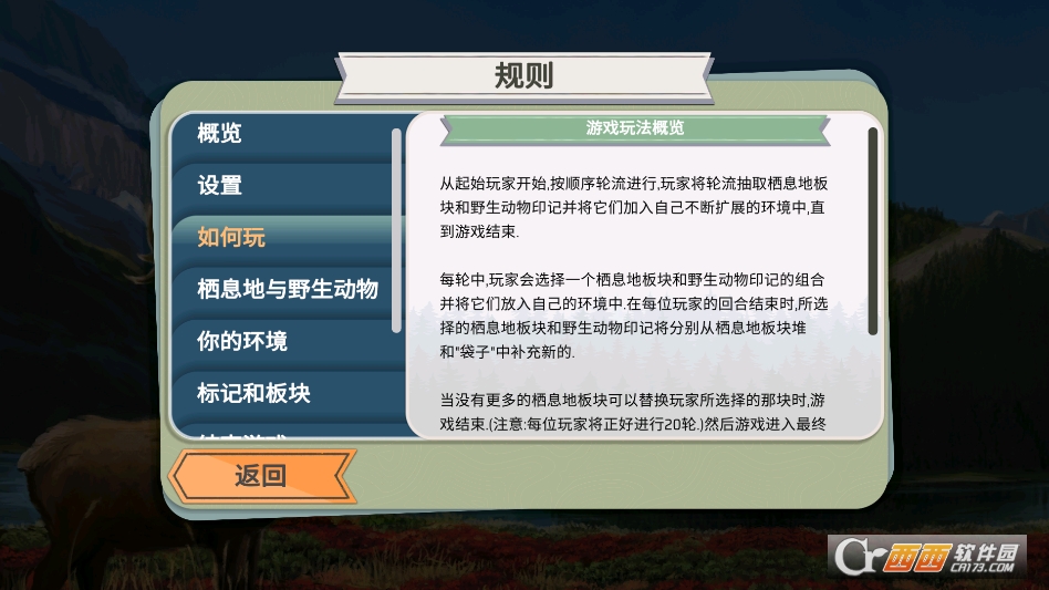 最终目标是培育最完美的生态系统,靠策略拿高分。得合理放置动物和地形板块,比如在森林里多放鹿,在湖泊边安排鲑鱼,还要注意不同动物之间的平衡,不能让某一种动物过多破坏生态。最后根据动物数量和地形板块数算分,得分最高就算赢,策略用得好才能赢。