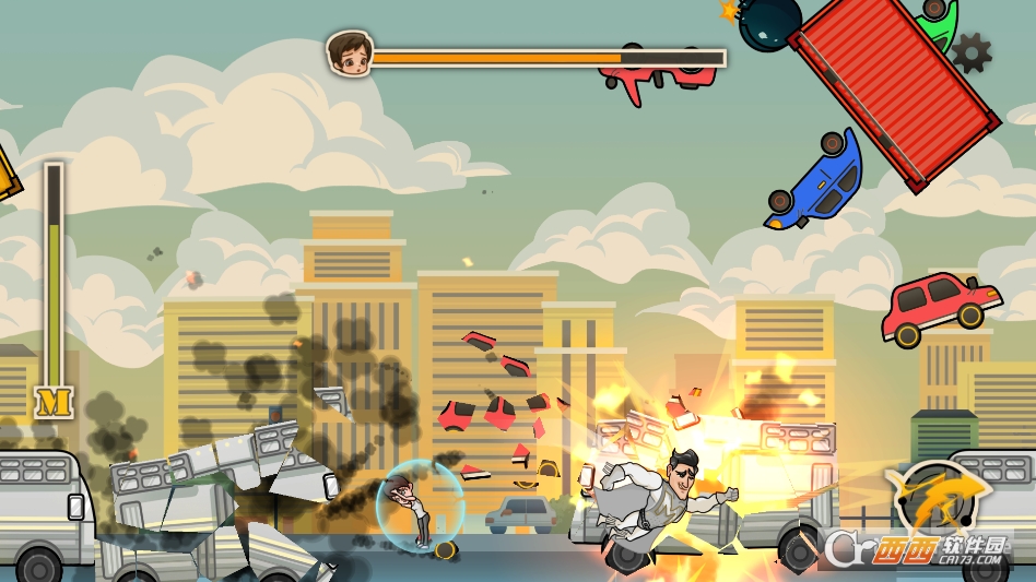 成都超人手机版是B站UP主“火山哥哥”自制的魔性小游戏,核心就是跟着最近超火的“成都超人”梗走,让你操控成都超人保护美女记者,躲开周围冲过来的各种障碍物,喜欢玩魔性小游戏又追热点梗的玩家,玩它会觉得又搞笑又解压。