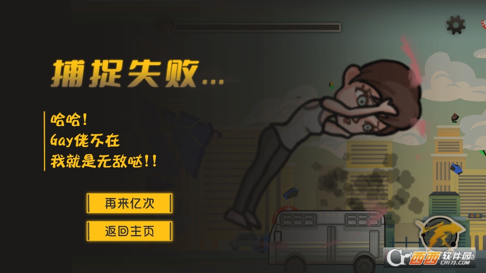 第二个特色是“魔性画风+音效,氛围拉满”。不管是角色还是障碍物,画风都走搞笑夸张路线,成都超人的衣服颜色鲜艳,记者的表情带着点呆萌,连失败时的提示语都很幽默,比如“超人歇会儿,下次再保护”。再配上节奏感强的魔性BGM,玩的时候氛围直接拉满,越玩越觉得搞笑。
