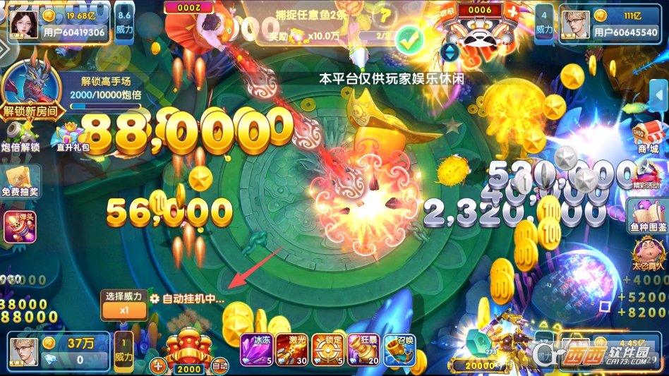 想玩好这款游戏,快速反应是关键,尤其是在高倍率捕鱼场。比如遇到成群游动的“闪电鱼”,它们每秒能窜好几个位置,必须在鱼群经过炮台瞄准范围的瞬间点击发射,稍微犹豫就会错过,能不能捕到全看手速和反应的配合。