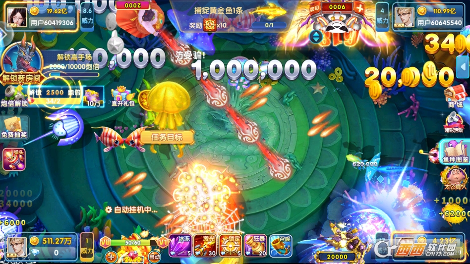 第三个亮点是“反应与策略结合,不只是单纯拼手速”。不像有些游戏只靠无脑点击,这款除了快速反应,还得搭配策略。比如看到移动快的鱼群,要先预判游动方向再提前瞄准;遇到BOSS时,要在快速点击的同时,找准时机用锁定道具,反应快加策略对,才能高效捕鱼,比单纯拼手速的游戏更有深度。