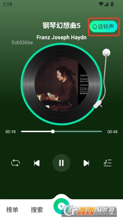 4,点击音乐资源就能直接播放,一键设置为铃声