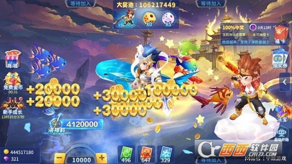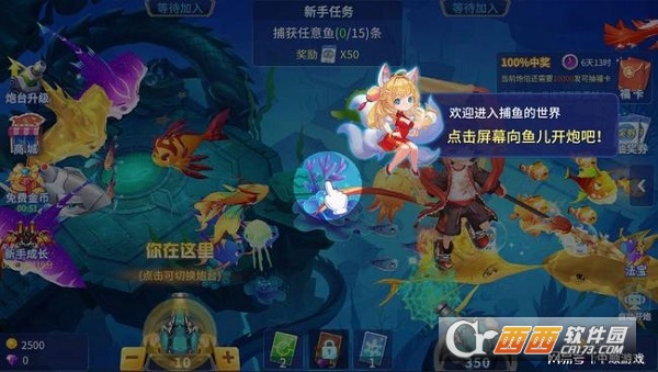 第二个主要玩法是“高倍炮台自由切换,适配不同场景”。游戏里有多种倍率的炮台,从1倍到100倍不等,你可以根据捕鱼场景自由选择,比如在普通场景用10倍炮台,在BOSS场景切换到50倍炮台。高倍炮台能靠完成任务解锁,解锁后就能随时用,不用额外花钱购买,特别良心。