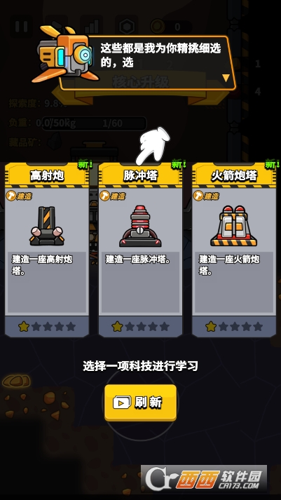 3,根据矿石的数量可以解锁多个随机炮台