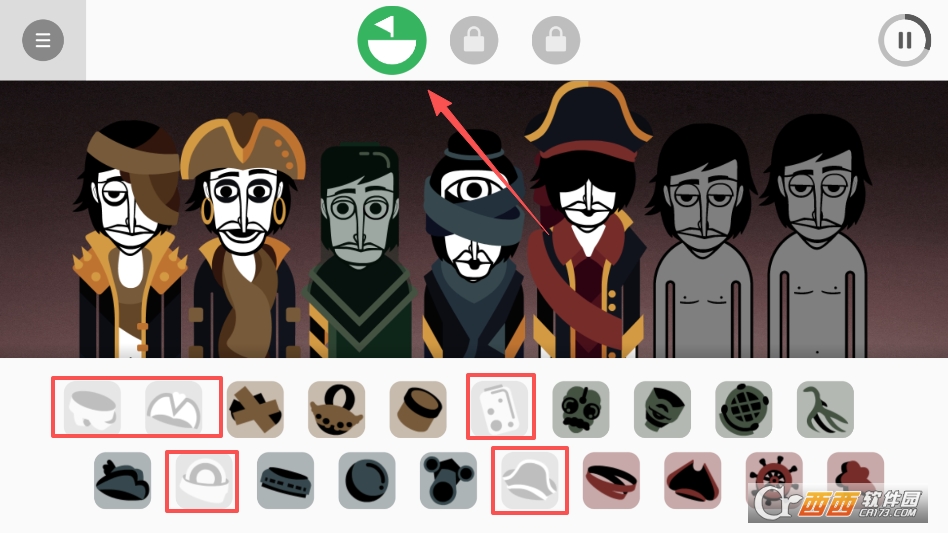 这模组的海盗风真的超浓,第一眼就很有那味儿。画面里的小人全是海盗打扮,有的戴三角帽、有的挂独眼龙眼罩、有的扛着小弯刀,连背景都是海盗船甲板的样子,看着就像在海盗船上玩音乐,代入感超强。
