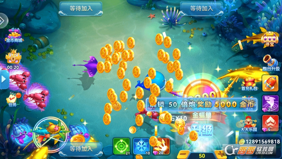 第一个主要玩法是“竞技场捕鱼”,这是最核心的。你先选一个想挑战的竞技场,进入后用炮台瞄准屏幕里的鱼儿开炮,不同鱼儿的分值不一样,小体型鱼分值低但好打,大体型鱼分值高但需要更强的炮台。打爆鱼儿会掉金币和道具,金币能用来升级炮台,道具能帮你更快捕鱼。