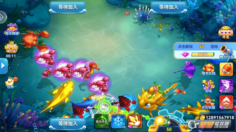 第三个主打玩法是“竞技场进阶捕鱼”,越玩越有挑战。前期用登录送的资源在低难度竞技场练手,攒金币升级炮台,等炮台威力够了,就能进高难度竞技场打稀有BOSS鱼,BOSS鱼打爆后会掉更多金币和高级道具,还能攒活动积分换更多福利,玩法和福利双丰收。