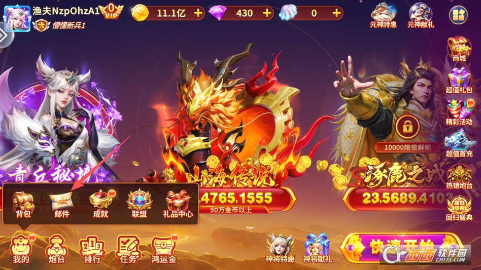 呼出菜单后,点击邮箱选项即可领取邮件了