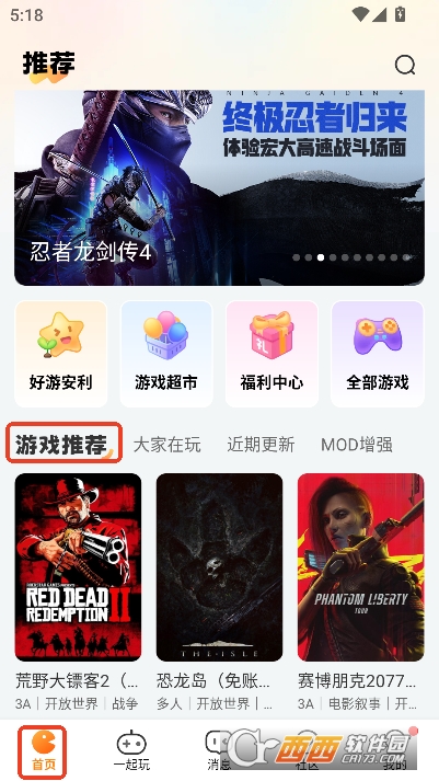 1,首页每日上新热门游戏精选推荐