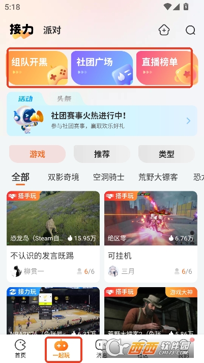 3,内置一起玩组队开黑房间实时交友
