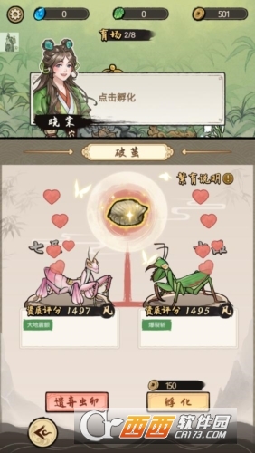 游戏的核心是无限繁殖系统,24小时不间断繁育虫茧,从来不用玩家盯着。这些虫茧会随机孵化出不同的战斗单位,有机甲螳螂、德鲁一螳、邓布利螳等上百种,每颗虫茧打开都是未知的惊喜,收集新物种的过程特别上瘾。
