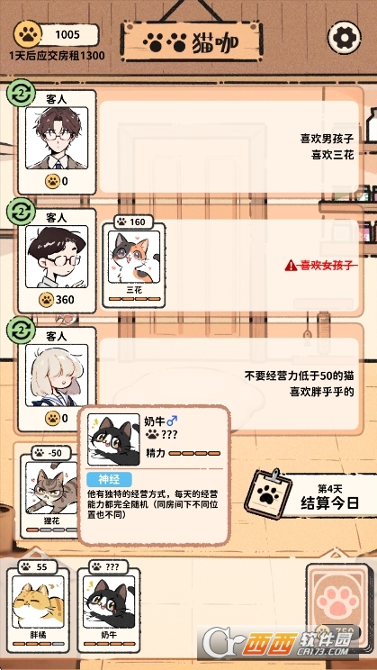 2、猫咪养成系统:收养不同品种的猫咪,每只猫咪都有独特的性格和喜好