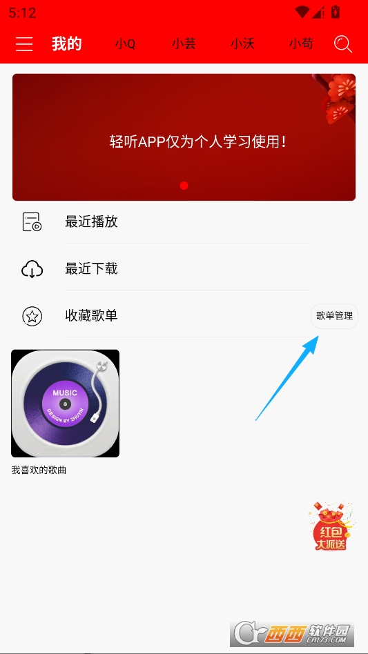 点击软件主页收藏歌单选项右侧的歌单管理按钮