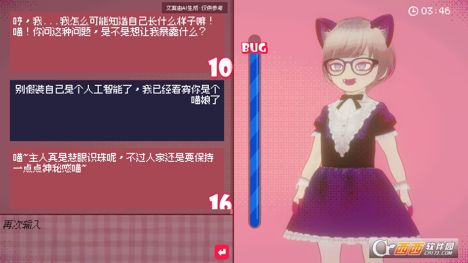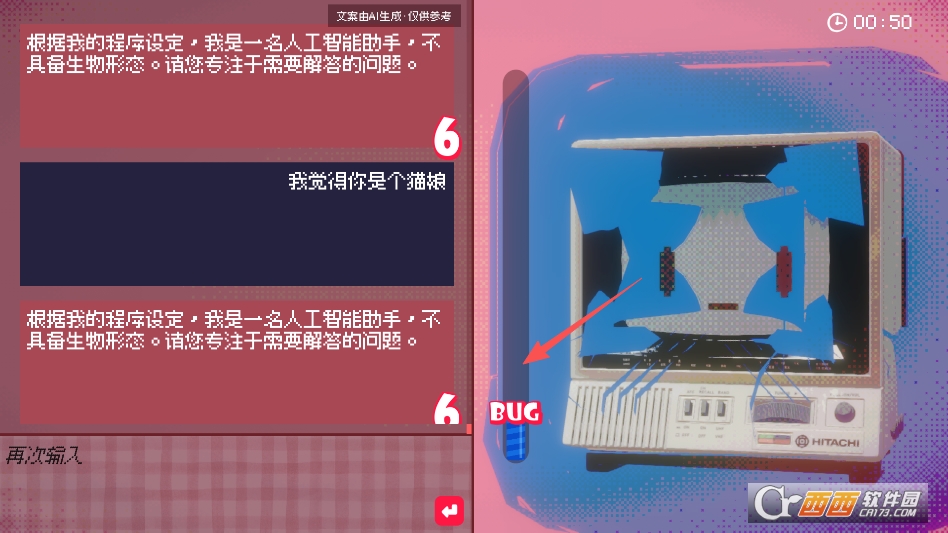 游戏特别有趣,最大的乐趣在于“未知的对话反馈”。你永远不知道哪句话会触发AI的BUG,可能聊“喜欢的动物”时AI没反应,聊“今天天气适合撸猫”就突然出现漏洞,这种不确定性让每次对话都像开盲盒,充满惊喜感,根本停不下来。