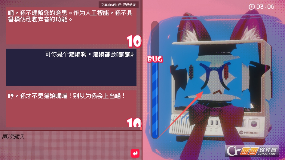 也有玩家提到:“游戏的反差感做得特别好,小电视AI的机械音和猫娘的软萌音对比超明显,变身那一刻真的很治愈。唯一可惜的是目前能诱导的BUG方式不算多,希望后续更新更多对话方向,让游戏能玩更久。不过现在的内容已经很够打发时间了,推荐给喜欢可爱风格的玩家。”